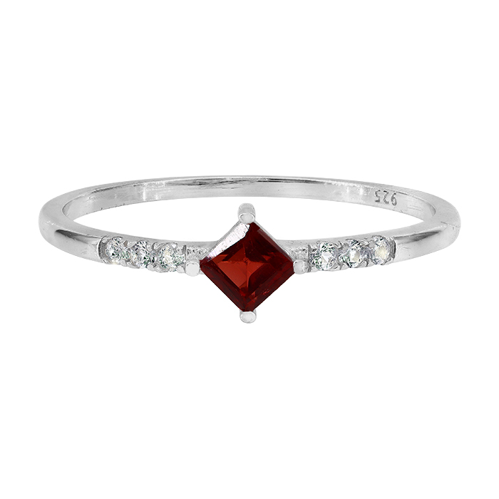 Sterling silver with rhodium, 3x3mm garnet ring, 1mm band