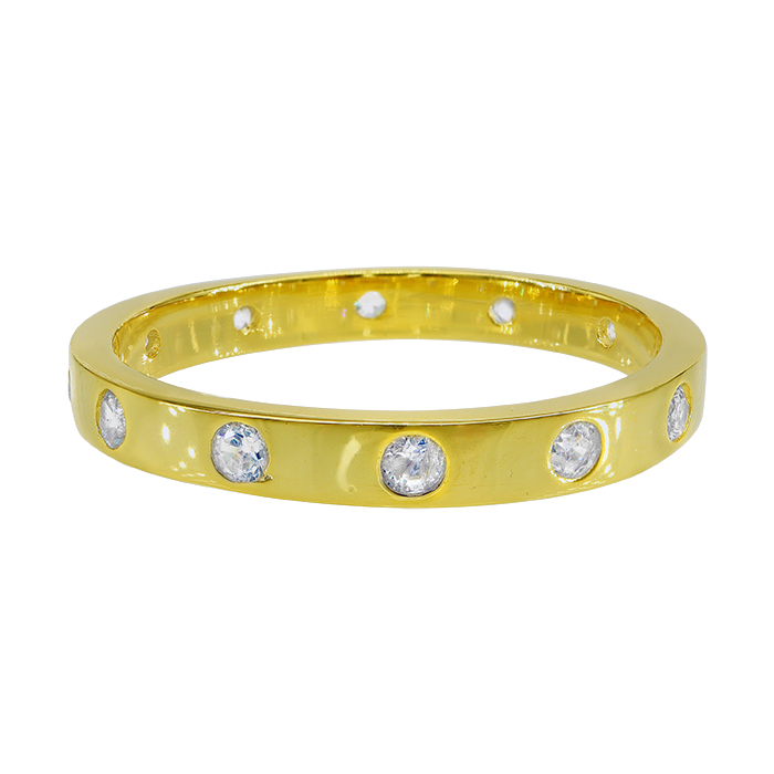 Sterling silver with gold, cubic zirconia band, 3mm width