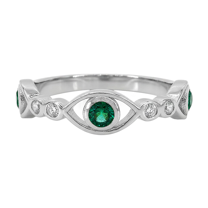 Sterling silver with rhodium, evil eye ring with cubic zirconia, 5.5mm width