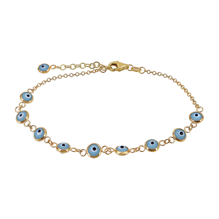 10KT Gold, 5mm evil eye bracelet, 6.5″ + 0.5″ + 0.5″ extension