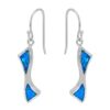 Sterling silver with rhodium, 15x25mm leaf earrings with emulated blue opal