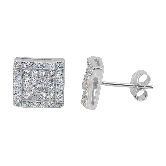 Sterling silver with rhodium, 8x8mm square stud earrings with cubic zirconia