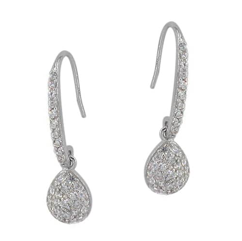 Sterling silver with rhodium round dangling earring, 8x7mm teardrop