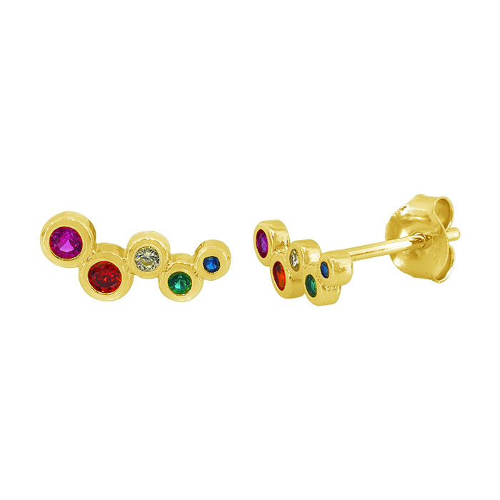 Sterling silver with gold, cubic zirconia stud earrings, 4.5x10mm