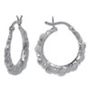 Rhodium plated on Sterling Silver, oval shape hoop earring with stardust finish. Approximate frame size: 26mm L x 19mm W x 3mm T.