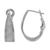 Rhodium plated on Sterling Silver, oval shape hoop earring with stardust finish. Approximate frame size: 26mm L x 19mm W x 3mm T.