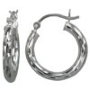 Rhodium plated on Sterling Silver, diamond cut finished, round shape hoop with clip closure. Approx size: 30mm D x 2.5mm T.