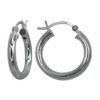 Rhodium plated on Sterling Silver, round shape hoop earring with stardust finish. Approximate frame size: 14mm Diameter x 4.5mm T.