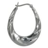 Rhodium plated on Sterling Silver, oval shape hoop earring with stardust finish. Approximate frame size: 38mm L x 22mm W x 3mm T.