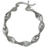 Sterling Silver, smooth, twisted round shape hoop earring with clip closure. Approximate size: 30mm Diameter x 4.5mm Thickness.