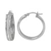 Rhodium plated on Sterling Silver, oval shape hoop earring with stardust finish. Approximate frame size: 26mm L x 19mm W x 3mm T.
