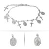 Sterling Silver with rhodium, Virgin Mary and cross charm bracelet with 6.5"+1" extension.