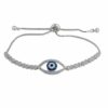Sterling silver with rhodium, adjustable evil eye bracelet with rubber stopper, 10x20mm(eye), 3mm(CZ).