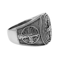 Sterling silver, Saint St Benedict medal cross crucifix ring, 18mm width